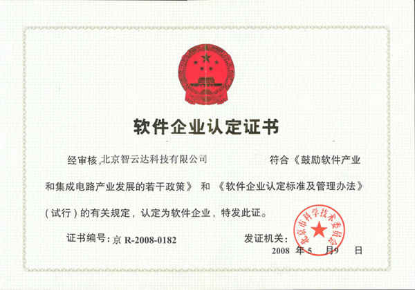 軟件企業認證證書