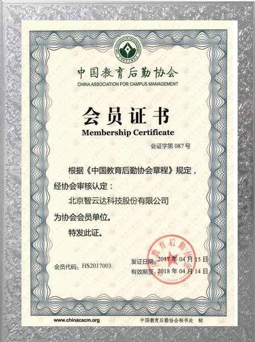 中國教育后勤協(xié)會會員證書