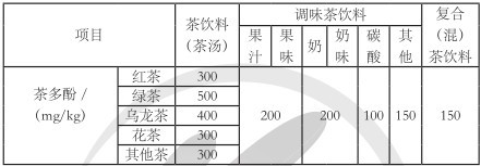 表 各種茶飲料中茶多酚的限量標準