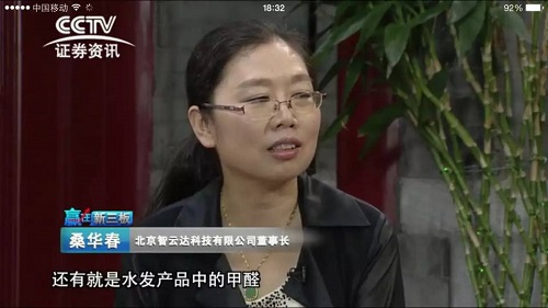 2015年8月1日的CCTV證券資訊頻道專訪了食品安全快速檢測行業的領軍企業——智云達,同時邀請到了智云達公司董事長桑華春博士,中海創投投資部總經理秦超,鴻憬投資創始人羅斌和申萬宏源證券有限公司場外市場北京業務團隊負責人毛雨對北京智云達掛牌新三板進行分析。