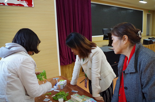 食品安全檢測消費者體驗中心的老師帶領同學們親自動手體驗蔬菜中農藥殘留檢測
