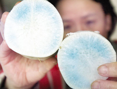 網上流傳更多的說法是:藍心蘿卜是商家為了讓蘿卜能長期存放,特意打的保鮮劑。藍心蘿卜有毒性,對人體有害。對于這種說法,范志紅表示,這幾乎沒有可能性。一方面由于人工染色情況下,人工色素顏色比較穩定,一般遇到酸堿都不會變色;另一方面是由于蘿卜本身的價格很便宜,而添加保鮮劑需要大量的人工成本,一天花幾百塊錢的人工成本去加保鮮劑,商家“犯不上”。