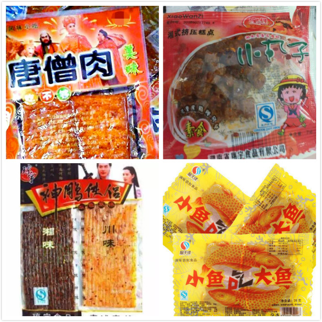 那時(shí)候的辣條也知道借熱點(diǎn)營(yíng)銷(xiāo),所以命名也總是緊跟潮流,什么“唐僧肉、小丸子、神雕俠侶”就統(tǒng)統(tǒng)跑出來(lái)了!就連小魚(yú)吃大魚(yú)的電影也被拿來(lái)命名了呢!