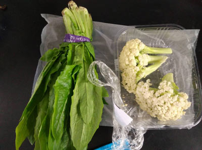 樣品為菜花、油麥菜;