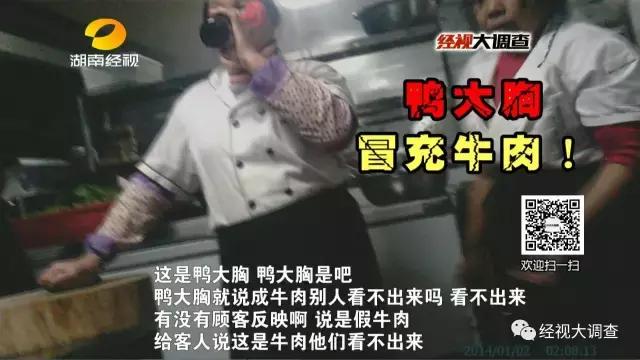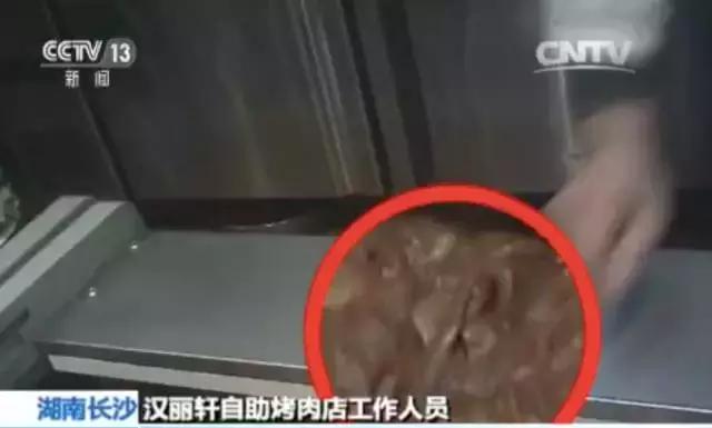 再來(lái)回顧一下,去年12月,湖南經(jīng)視記者臥底長(zhǎng)沙一家漢麗軒門(mén)店,就發(fā)現(xiàn)這家49元隨便吃的自助烤肉店,用鴨肉冒充牛肉,經(jīng)過(guò)特殊醬料腌制后,顧客根本不會(huì)察覺(jué)。