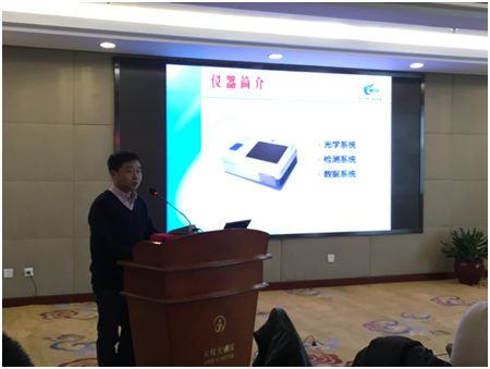 會議休息的間歇,與會領(lǐng)導(dǎo)及在場的其他公司代表都對我公司產(chǎn)品表現(xiàn)出了的極大的興趣。市場總監(jiān)王覃對各位領(lǐng)導(dǎo)和專家提出的問題,從儀器的原理、技術(shù)參數(shù)、應(yīng)用范圍等方面進(jìn)行了詳細(xì)說明,得到廣泛認(rèn)可。