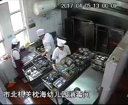 浙江寧波北侖區(qū)教育局裝備中心主任樂納紅在接受中新網(wǎng)記者采訪時透露,北侖區(qū)公辦的中小學、幼兒園的食堂后廚基本全部安裝有監(jiān)控設備。