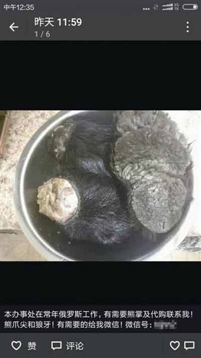 本文關鍵詞:微信朋友圈公然叫賣熊掌980元一斤 自稱有專門渠道“代購”