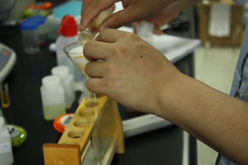 2、加8ml農殘緩沖液,輕微震蕩搖勻。