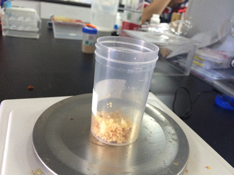 1、稱取絞碎的4克樣品于50mL提取瓶中。加入40mL蒸餾水,充分搖動1分鐘,靜置5分鐘。