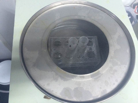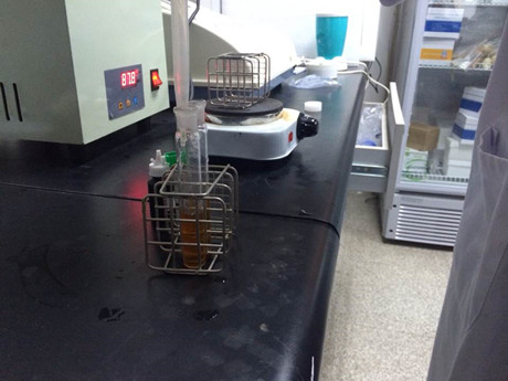 實驗人員取 2g樣品放入比色管中,加入乙酸乙酯,充分振搖,靜置,取上清液于試管中或表面皿上,在 85℃左右水浴中加熱 ,揮干余液,放至室溫后,加入 1mL 的純凈水充分溶解殘渣,加入毒鼠強試劑,輕輕搖動后,將試管放入 90℃以上水浴中,加熱 5min 后取出,觀察顏色變化。