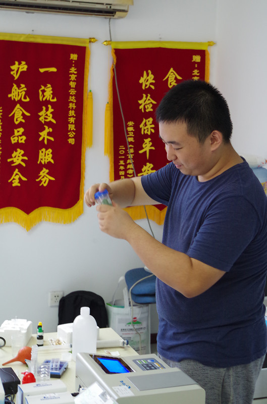 下午由技術(shù)人員現(xiàn)場做快檢實驗操作,涉及肉制品、乳制品。其中主要演示果蔬農(nóng)藥殘留的快速檢測(農(nóng)殘儀、農(nóng)殘卡);乳制品中三聚氰胺檢測;甲醛的快速檢測;食品中二氧化硫的快速檢測;劣質(zhì)“地溝油”快速檢測;肉制品中瘦肉精快速檢測等項目。