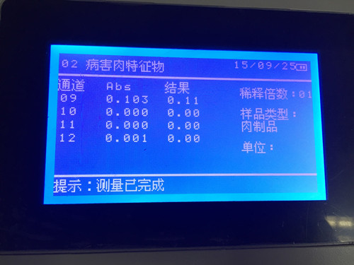 結果顯示樣品中POD活性值低于正常豬肉,疑似病害肉。快速檢測只能作為初篩,建議送到第三方檢測機構進行定量檢測。