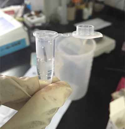 將紅蓋、綠蓋分別標號1、2。分別取樣品1mL至離心管中。